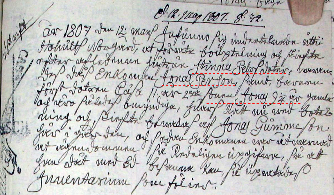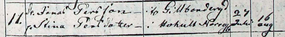 Jonas kom från Gillbonderyd och Stina från Hohults Norreg.Lysning 27 /7 Jonas Persson.