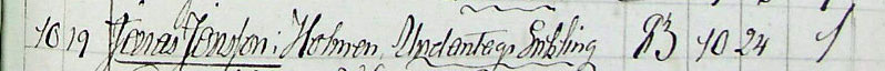 Född 1776-03-16 i Ravelsbygd, Madesjö (H) 1 . Död 1860-02-10 i Holmen, Madesjö (H) 2 . Bonde |