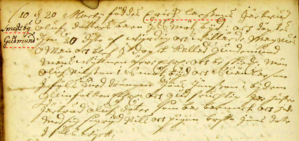 Gudmund Eriksson föddes 20/3 1714 i Smedsby. |