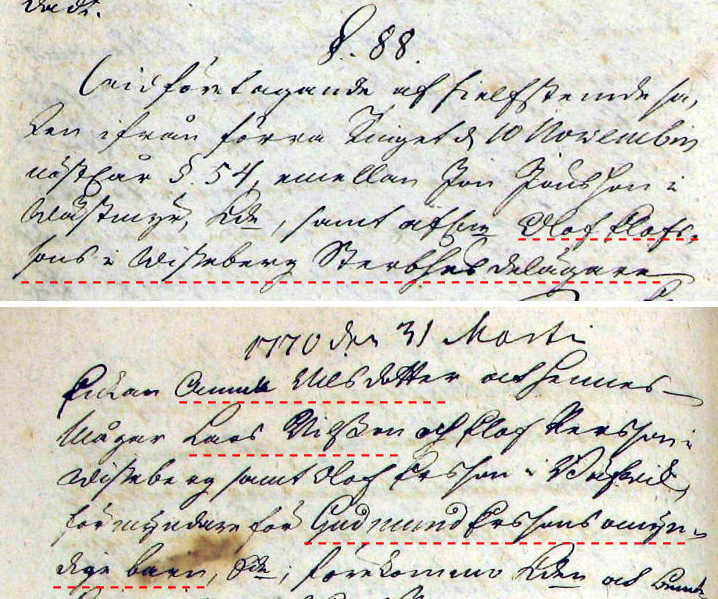 Ur domboken VT 1770 som visar att Gudmunds Erssons barn var barnbarn till Olof Ersson i Visteberg, alltså var Olof svärfar till Gudmund. |