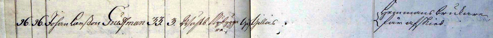 Från Generalmönstringen 1763 för rote 96 i Hjuken: Johan Larsson Gruffman, 33 år gammal, 3 tjänsteår, från Wästerb., nybyggare, gift, ,hemmansbrukare får avsked |