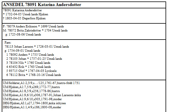 Född 1704 i Tegsnäset, Umeå landsförsamling (AC) 3 . |
