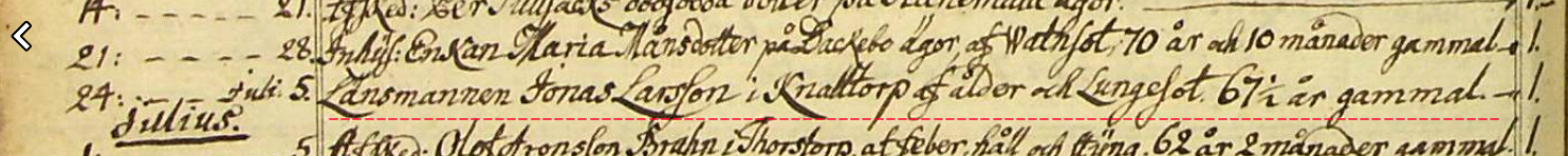 Död 1767-06-24 i Knalltorp, Madesjö (H). 2 |