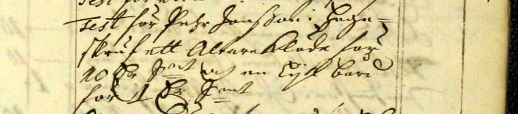 Ur Kyrkoräkenskaperna 1709: "Testamente för Pehr Jonsson i Hagaskruv ett altarklocka för ..."