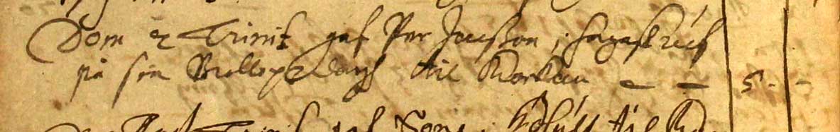 Ur Kyrkoräkenskaperna 1656: "Dom 2 Trinit gaf Per Jonsson i Hagaskruf på sin bröllopsdagh til kiorkan ---5"