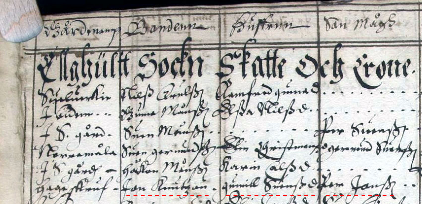 I Mantalslängden 1642 så syntes hela familjen i Hagaskruv: bonden Jon Knutsson, Gunill Svensson och sonen Per Jonsson