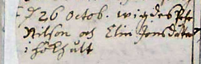 Per Nilsson och Elin Jonsdotter vigdes 26/10 1690 |