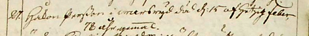 Håkan Persson i Varsryd dog 78 år gammal 27/4 1755 av "hetsg feber" |