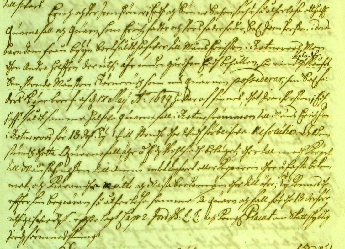 Dessutom har Nils Olofsson i Ås hört Lucias son Stor-Erik säga att hanfått lotten på det sättet. Men Jöns Nilssons sonson son Jöns Jonsson i Edvisar att Jöns Nilsson fått sin syster Annas lott i testamente för skötsel ocherhållit fasta därpå 1648 18/8, långt efter det att Lucias man dräpts, fastänman ej säkert vet när detta skett.Rätten anser fastebrevet vara tillräckligt bevis, varför käromålet ogillas.
