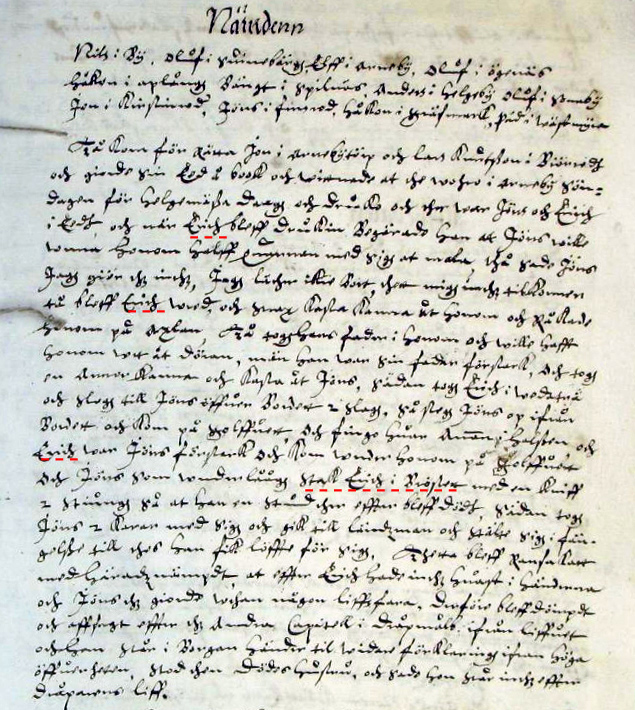 1642 HT §7: Jöns Nilsson i Ed har överenskommit med svåger Eriks barn att han ska ge dem 10riksdaler för att de aldrig mera ska klandra honom för Eriks död. Barnens moder(Eriks hustru och Jöns syster Lucia) erkänner sig ha blivit gottjord.
