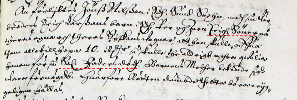 1655 ht 7:Johan Björnsson i Borgeby ålägges att betala Per Eriksson i Persby ochOlof Eriksson i Ed samt deras medarvingar 6 rd för en oxe som han tagit handom och sålt och som hade fallit dem till arvs efter farfadern Lars Eriksson.