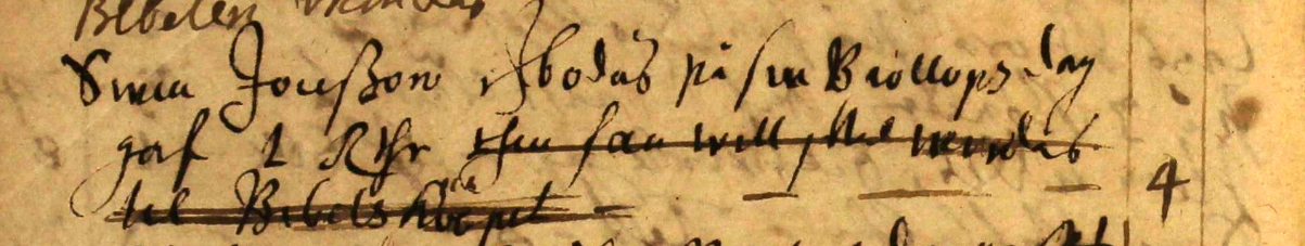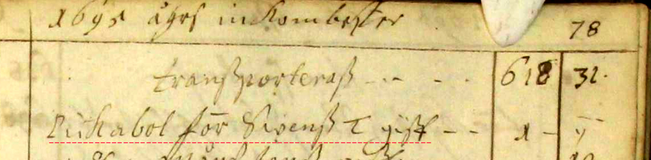 Ur Kyrkoräkenskaperna 1695: "Pikabol för Swen J T(estamentpenning) gaff - -" |