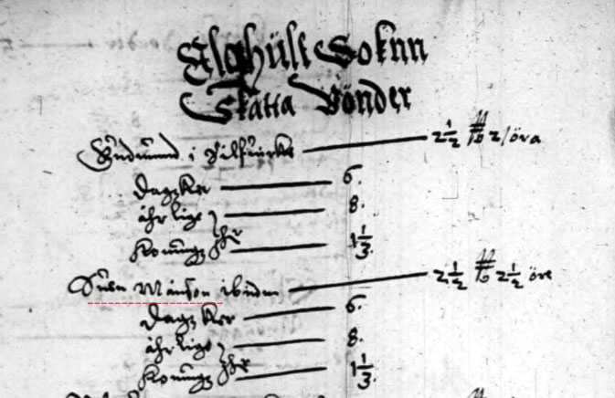 Ur 1642 års Mantalslängd. Sven Månsson stod utan hustru(okänd)