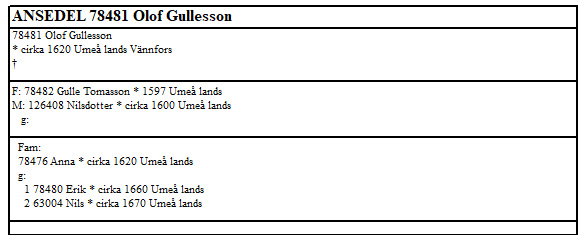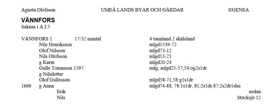 Olof Gullesson tog över efter sin far enligt släktutredning för Vännfors som finns i ” UMEÅ LANDSFÖRSAMLING BYAR OCH GÅRDAR 1600 – ca 1760” av Agneta Olofsson sid 280 |