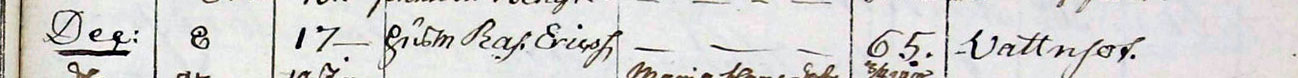 Husmannnen Rasmus Ericsson dog 65 år gammal av vattusot den 8/12 1826
