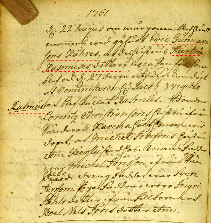 Rasmus födelsenotis 22/12 1761