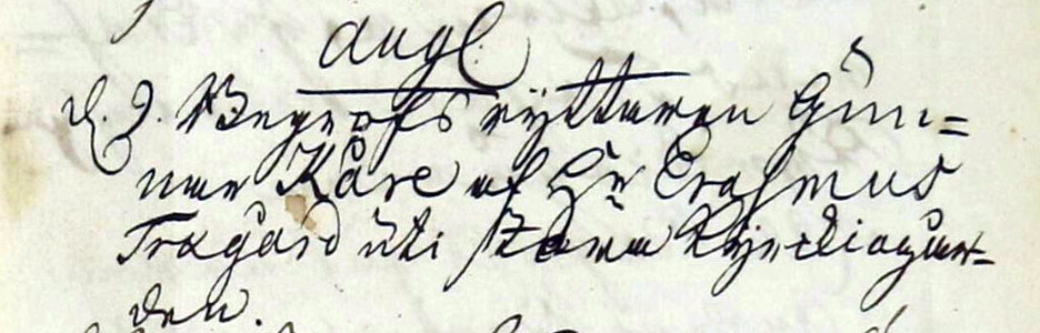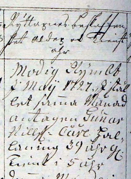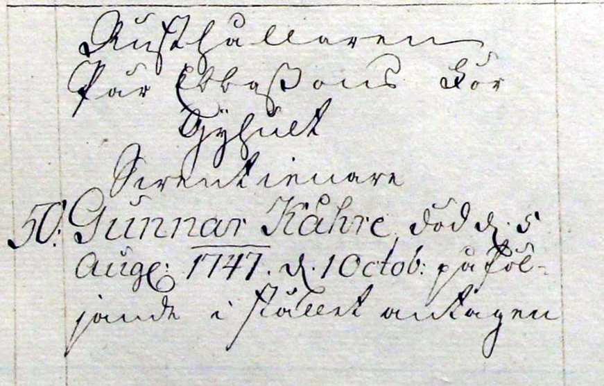 Ur Generalmönsterrullaren 1754: Ryttaren Gunnar Kåhre dog 5/8 1747 i Gyhult |