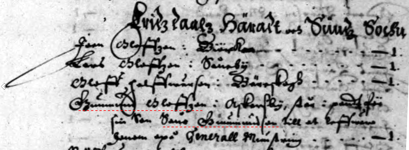 Ur "Rulla opå Nysckrefne knechter" från Sunne 1640. |