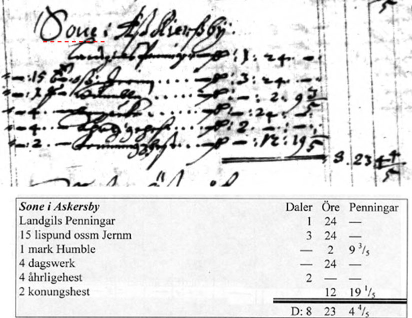 Ur Jordeboken: 1643: Sone i Askersby |