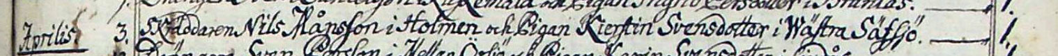 Skräddaren Nils Månsson i Holmen vigdes med Kierstin Svensdotter från Wästra Säfsjö |