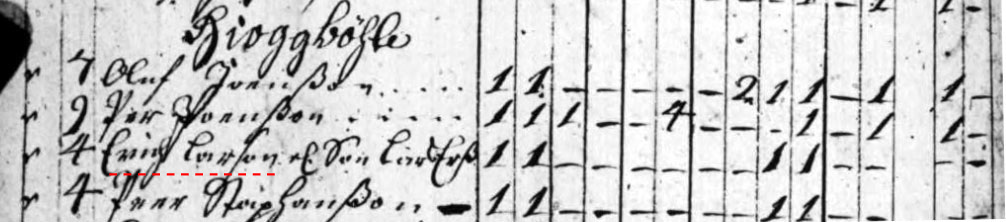 Erik Larssons sista år i Mantalslängderna för gården i Hjoggböle 1698. Han står som 3: person, ovanför svärsonen Per Staffansson |