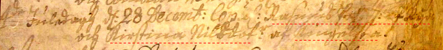 Kristinas och Rasmus vigselnotis 28/12 1718 från Ottarps socken. Kristina kom från byn Kingelstad i Ottarps församling och Rasmus från Rya i Kvistofta socken |