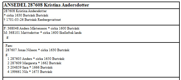 Kerstin Andersdotter var gift med Jon Nilsson enligt "Burträsk 1539-1800" av Agneta Olofsson sid 265 |