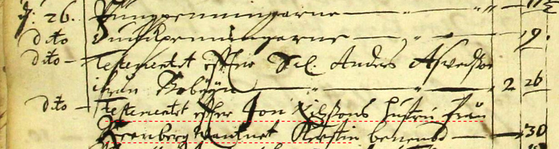 Testamentspeng erlades "efter Jon Nilssons hustru från Reenbergswattnet Kerstin....." |