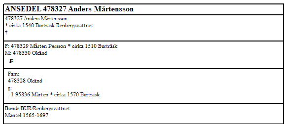 Död efter 1598. Bonde i Renbergsvattnet, Burträsk (AC) 2 |
