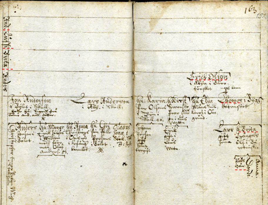 År 1543 hade Jon Olsson 4 spannland åker (0,6 hektar) samt 4 lass äng. På gården fanns 1553 5 kor. Brodern Jakob Olsson hade 1539-1558 ett hemman. År 1543 hade han 2, spannland åker (0,4 hektar) samt 3 lass äng. Han hade 2 kor 1553. Jakob Olsson dog som ung enligt Bureus. Hustru Kerstin ägde gården i tiondelängderna 1559-1560. Jon Olssons gård var 1559 på 5 markland och 2½ öresland. Nu hade Jakob Olssons hemman återgått till Jon Olssons. Vid Älvsborgs lösen 1571 hade Jon Olsson 5 mark koppar, 6 kor, 8 får, 2 svin samt 1 sto för 6 mark och 2 öre. Egendomen värderades till 80 mark och 5 öre.(sid 384)