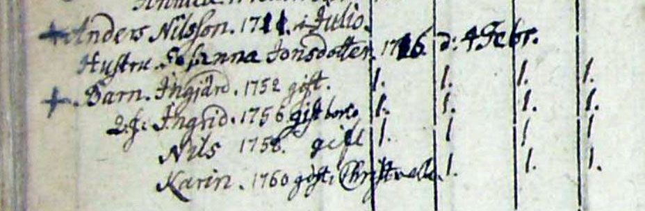 Tom 1759 bodde Anders och Susanna i Danielsmåla, här står omnämnt att Anders hustru hette Jonsdotter