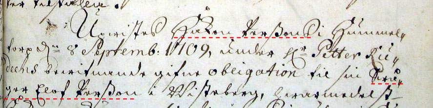 Från VT 31/1 1722: ".....Håkan Persson i Hummeltorp....gifva obligation til sin svåger Elof Persson i Wisteberg,...." |