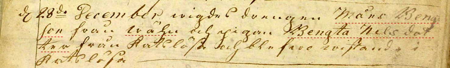 28/12 1769 vigdes Måns Bengtsson från "Wähn" med Bengta Nilsdotter från Katslösa |