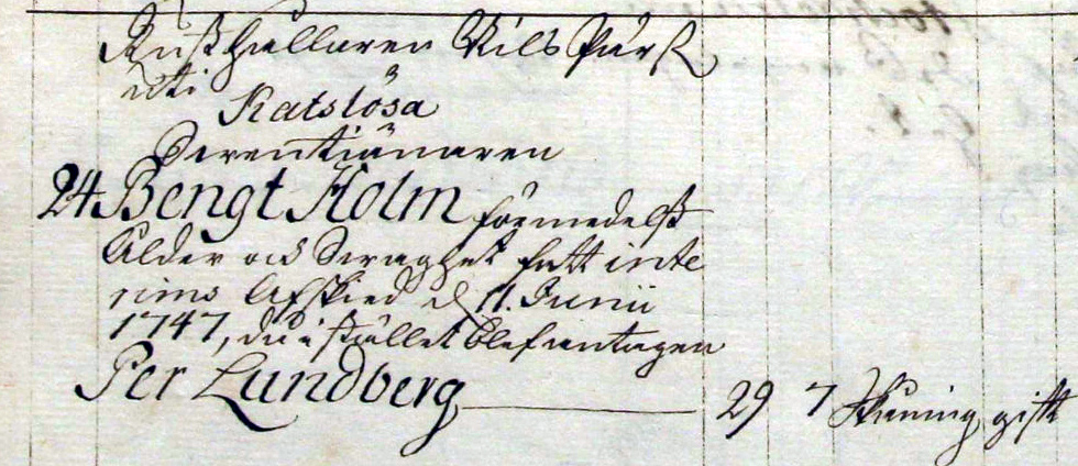 1764 års Generalmönsterrulla visade att Bengt Holm ersattes 1747 |