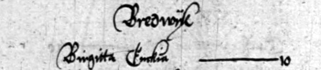 Står omnämnd som "Birgitta enkia" i Landskapshandlingarna 1568