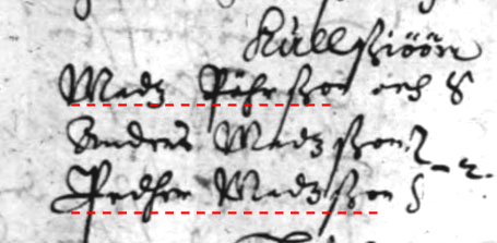 Från 1621 års mantalslängd för knektutskrivning. För Kussjön uppräknas Peder, hans bror Anders och dera far Matts |