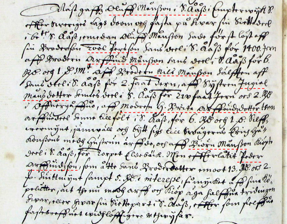 Utifrån detta så är släkts härstamning från Olof Månsson och ? Månsson. detta betyder att en obekant ? Månsson fick en obekant dotter som var gift med Per Arvidsson